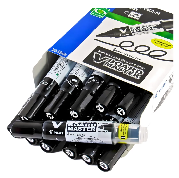 Tinta que apaga facilmente e dissolve em pó sem provocar manchas; Escrita média e imediata sem necessidade de agitar ou bombear; Tinta recarregável com o sistema WBS-VBM; Ponta em poliéster substituível com sistema WBTIP-VBM-M; Produto original PILOT. Atenção na conservação e preservação: Substituir refil e ponta conforme desgaste; Usar somente refil e ponta original Pilot; Tampa-lo após o uso prolonga a vida útil do marcador; Evitar exceder força, uma vez que prejudica o fluxo de tinta para a ponta.